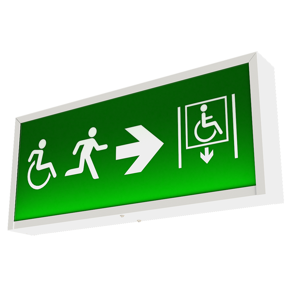 In accessibility-designed facilities, CSA B651 requires electrically illuminated signage with standardized accessibility symbols to support safe egress for all occupants. Our solution is engineered for compliance, providing dedicated signage for areas of refuge, accessible elevator lobbies, and designated accessible egress routes.